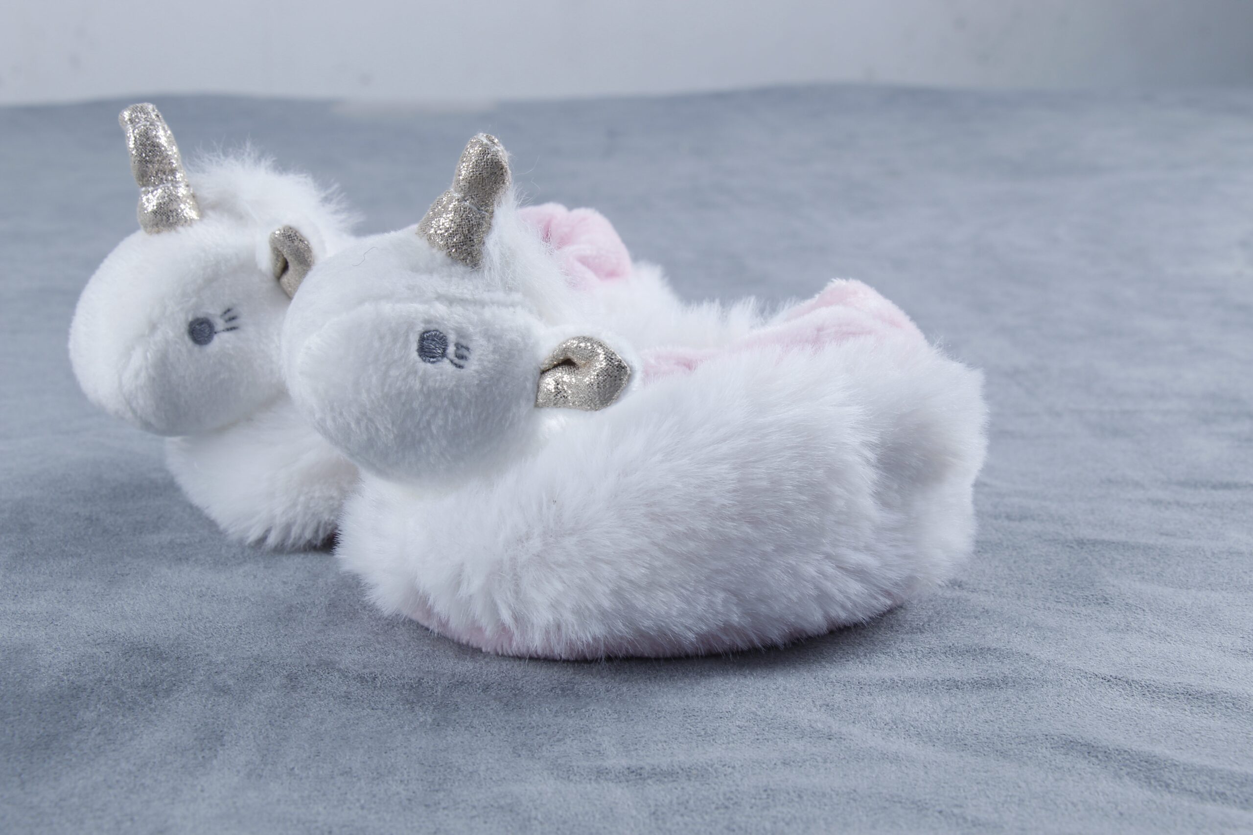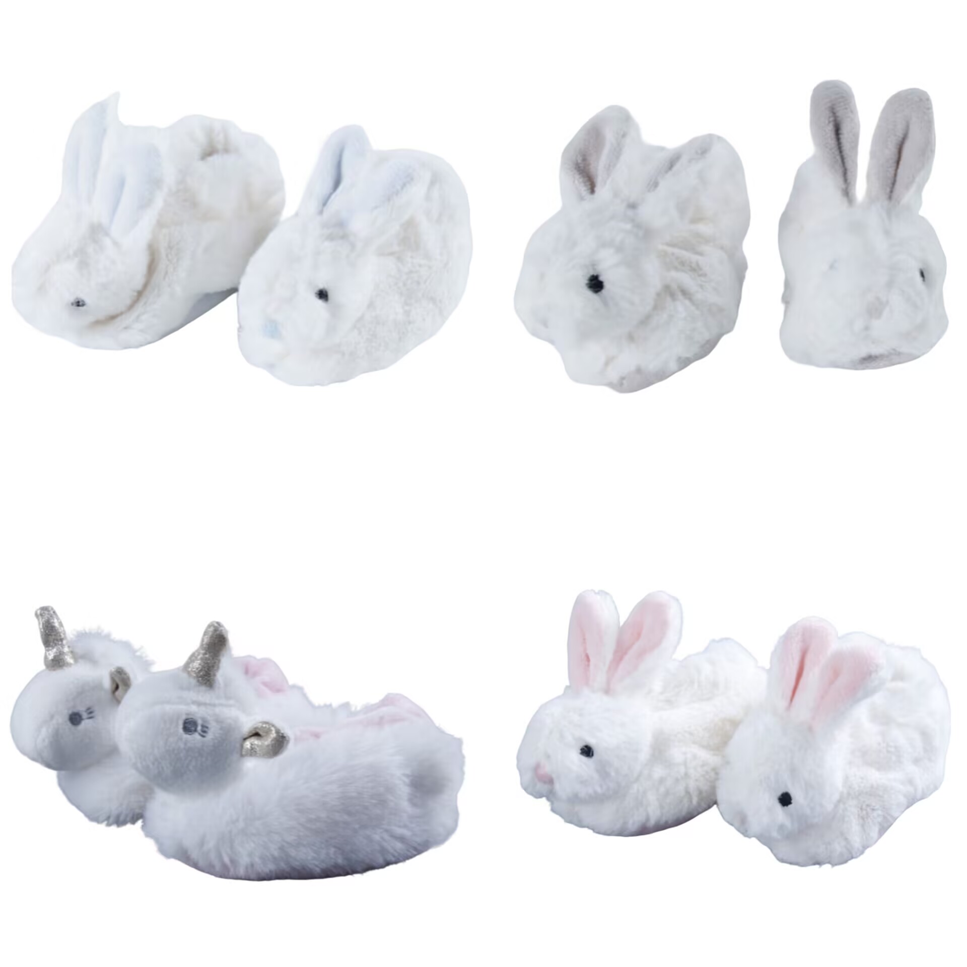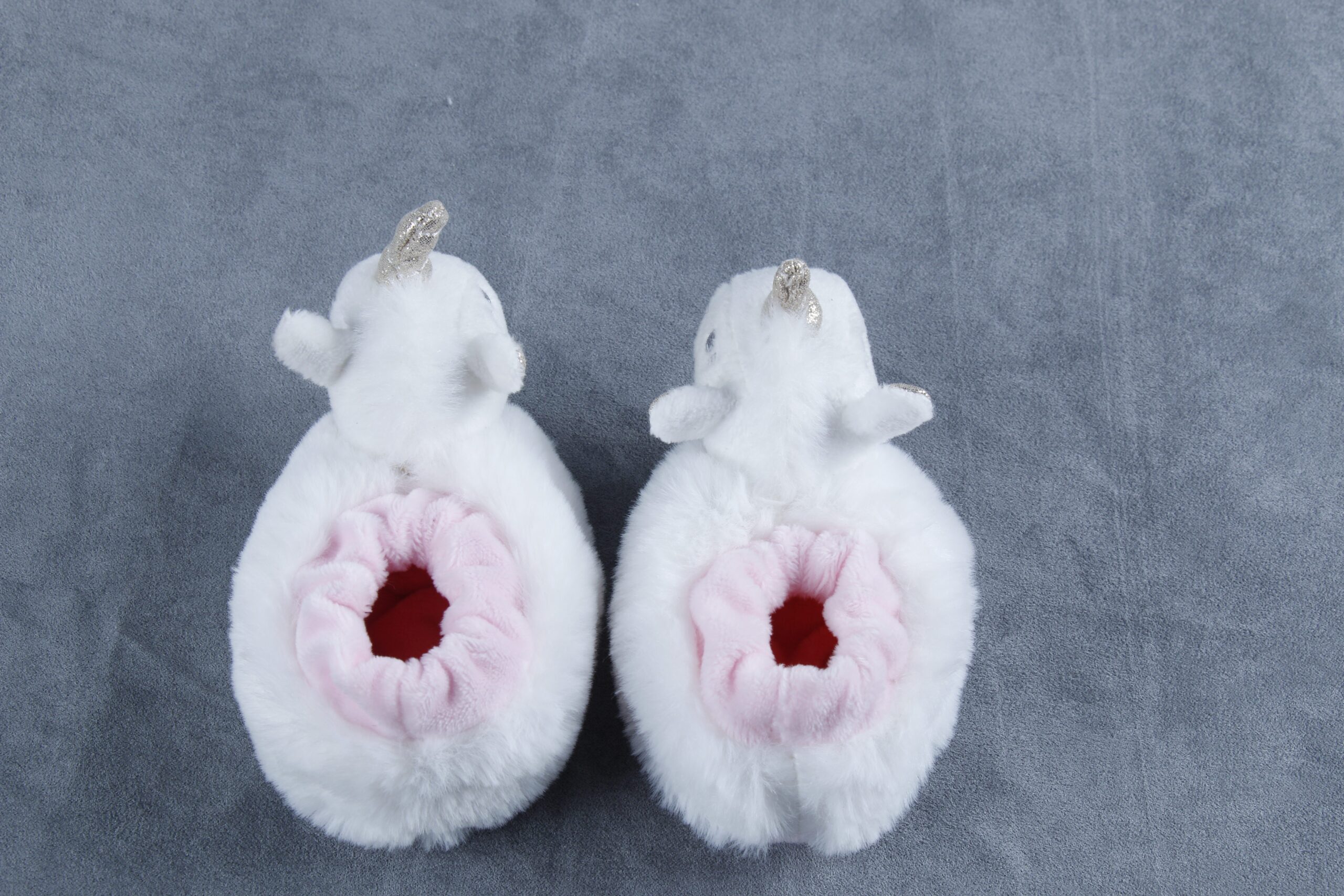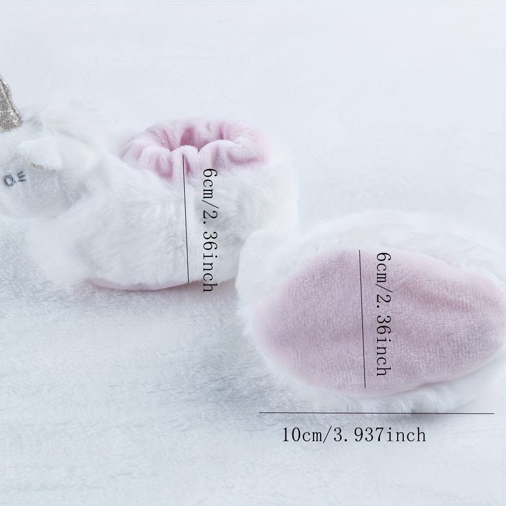 This is a pair of baby walkers’ shoes designed for autumn and winter. They feature designs shaped like rabbits and unicorns respectively, and are all made of rabbit fur fabric, giving them an extremely soft and cute appearance. Additionally, the rabbit-shaped shoes come in different colors, which can be distinguished by the color of their ears. There are also small hidden bells inside the heads of these small animal designs—each step the baby takes makes a sound, which can encourage the baby to walk more. Suitable for autumn and winter, the plush material of these shoes also provides warmth. As walkers’ shoes, their shape fits the baby’s feet well, offering comfort and lightness. At the same time, the lovely animal designs and hidden bells are also very popular among babies.